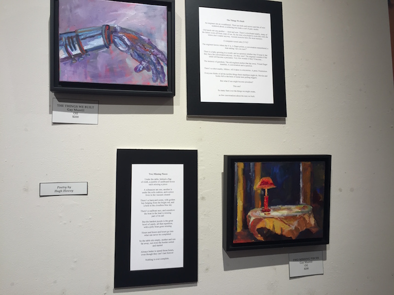 Which makes our recent collaboration really special. It shouldn’t be a big deal, just an exhibition at her local library that mixes the written word with a piece of art, but it means the world to me. My mom has always painted and been crafty. I remember as a kid her cross stitching or painting on blocks of wood or rocks. She has covered hundreds of canvases. It’s something she loves, just as I discovered that I love to write. But I never thought we’d team up and put these separate loves together. When the library called for submissions from anyone in the community who wanted to mix words and paint, she asked if I would join her.