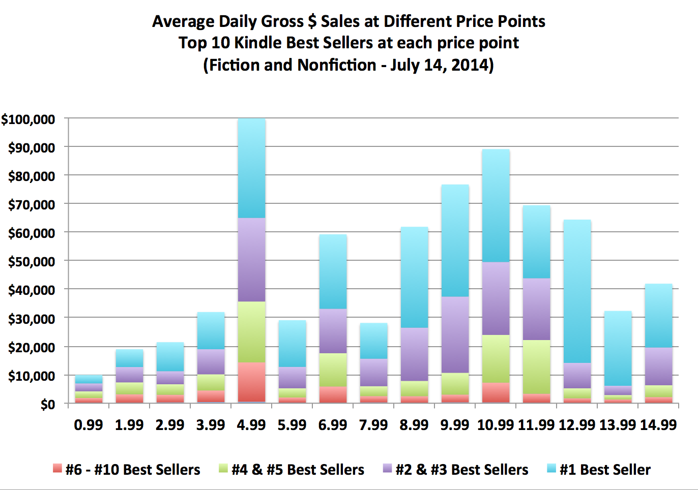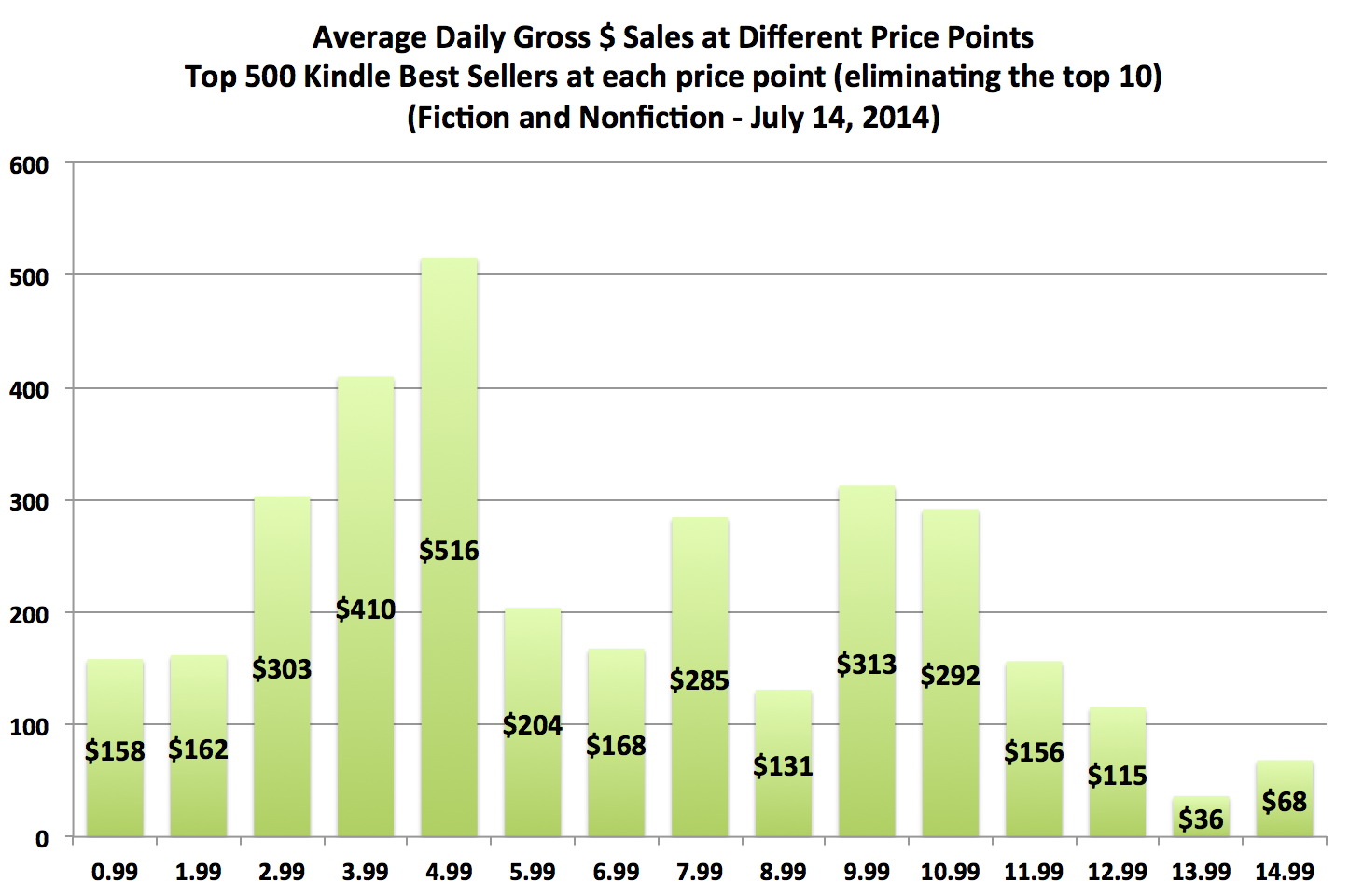 The Top 500 Best Selling Kindle books priced at $4.99 are out-earning those at $9.99, $10.99, $12.99, $14.99, and every other price point.