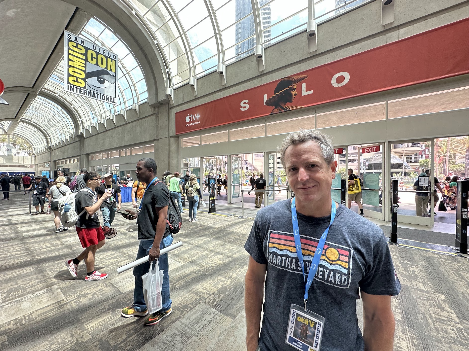 Because of the strikes, there were very few actors working the con. Hall H – where the studios normally do the big reveals for their projects – was very quiet. The only reminder that Hollywood existed were the big ads around town and the banners hanging in the convention center (Apple had a huge SILO banner right over the front entrance, which was surreal to see). But if anything, the move back to comics, artists, toys, and books was amazing. And San Diego was its usual awesome self.